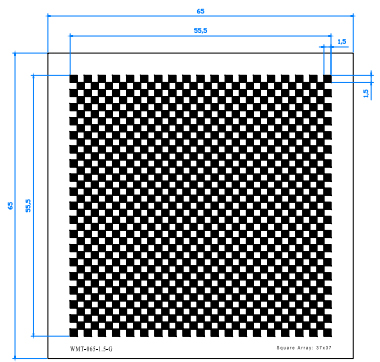 外尺寸65*65MM,有效图形面积55.5MM*55.5MM,阵列37*37,方格1.5mm*1.5mm