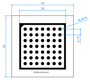 外尺寸40*40MM,有效图形面积30MM*30MM,阵列7*7,圆点直径1.875MM,圆心距3.75MM