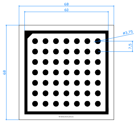 外尺寸68*68MM,有效图形面积60MM*60MM,阵列7*7,圆点直径3.75MM,圆心距7.5MM