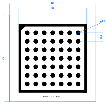 外尺寸127*127MM,有效图形面积100MM*100MM,阵列7*7,圆点直径6.25MM,圆心距12.5MM