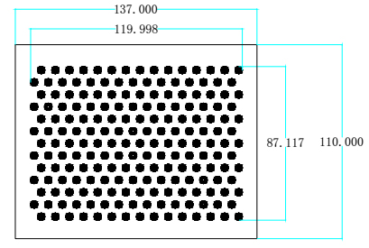 外尺寸137*110MM,有效图形面积119.998MM*87.117MM,阵列15*13,圆点直径6MM,圆心距12MM