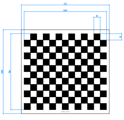 陶瓷材质;图案标准精度1um; 主要特点: 1. 陶瓷白底、图案深蓝色、黑色,对比度强烈 2.漫反射特性,完全杜绝反光 3. 单个图案精度物理误差在1um以内。 4. 最大外尺寸可做到200*200MM 陶瓷板使用场景 前置光源:环形光源、条形光源、同轴光源、自然光等,这些光源都是与相机镜头处于目标物的同一侧,建议选择带有漫反射特性的陶瓷材质标定板,避免反光与透光。 针对视场 棋盘格标定板建议标定板图案尺寸为视场1/2左右,标定图案15-20幅左右,尽量将视场各个区域都拍摄到。理论上圆点中主提取精度会高于角点提取精度,要想获取更好的标定结果,建议选择圆点标定板,OpenCV也是支持圆点标定板的。