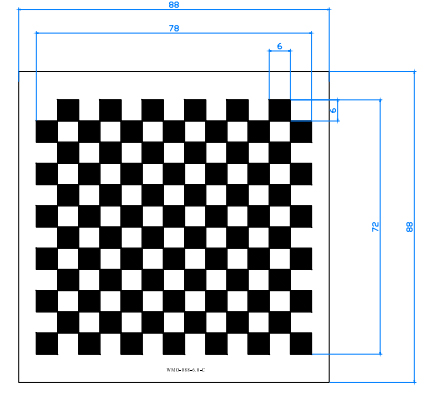 陶瓷材质;图案标准精度1um; 主要特点: 1. 陶瓷白底、图案深蓝色、黑色,对比度强烈 2.漫反射特性,完全杜绝反光 3. 单个图案精度物理误差在1um以内。 4. 最大外尺寸可做到200*200MM 陶瓷板使用场景 前置光源:环形光源、条形光源、同轴光源、自然光等,这些光源都是与相机镜头处于目标物的同一侧,建议选择带有漫反射特性的陶瓷材质标定板,避免反光与透光。 针对视场 棋盘格标定板建议标定板图案尺寸为视场1/2左右,标定图案15-20幅左右,尽量将视场各个区域都拍摄到。理论上圆点中主提取精度会高于角点提取精度,要想获取更好的标定结果,建议选择圆点标定板,OpenCV也是支持圆点标定板的。